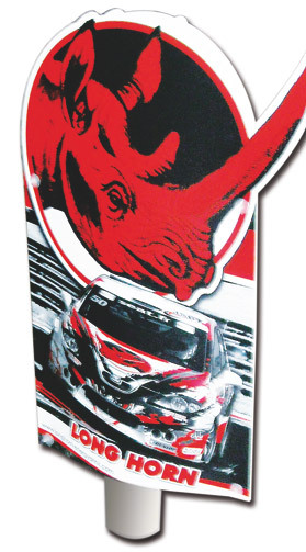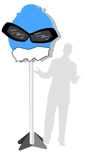 • Support : 2 plaques micro-cannelures assemblées + entretoise carton, pied alu et mât PVC