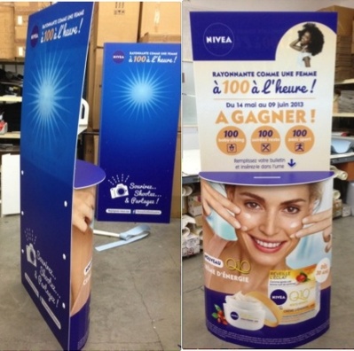 • Impact maximum en allée centrale, peu encombrant et transportable