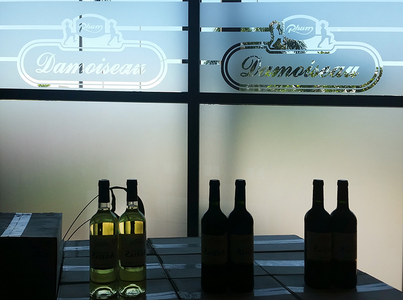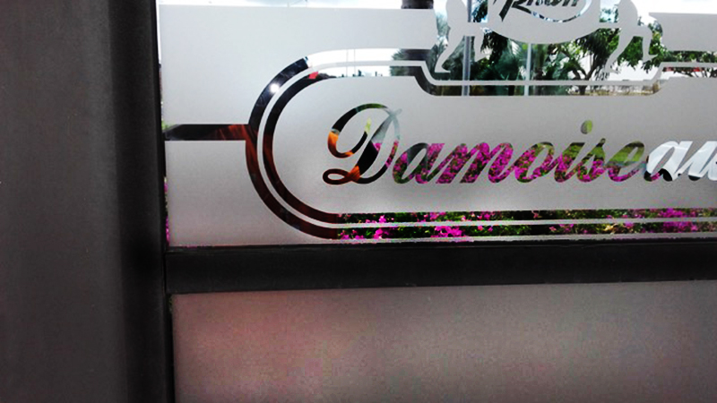 • Solution mise en œuvre : 60 m² d’adhésif dépoli avec lettrage et découpe du logo « Damoiseau » en silhouette
