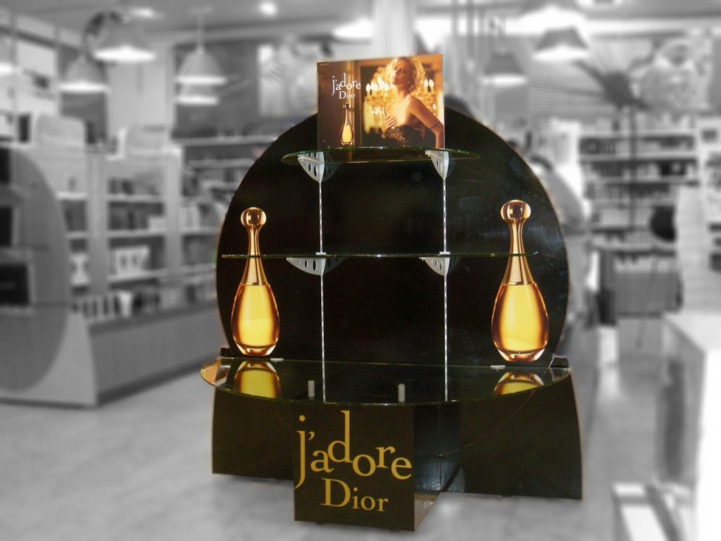 Pour la marque Guerlain, Dubois Imageries a conçu des têtes de gondoles sur mesure, destinées à mettre en avant les produits dans les magasins Nocibé.